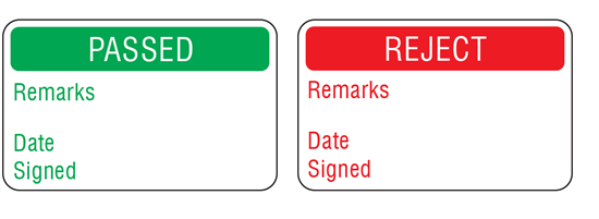 Quality Control Tags - Key Signs View Details ›. Safety Check Quality Control Tags 80mm x 150mm Pack of 10. £20.39. RRP £24.47. You Save £4.08 (17%) View Details ›. Inspection Quality Control Tags 80mm x 150mm Pack of 10. £20.39. RRP £24.47.
