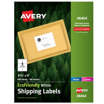 Avery Shipping Labels, White, 3-1/3" x 4", Sure Feed, Laser/Inkjet, 60 ... Avery Shipping Labels, Sure Feed, 3-3/4" x 4-3/4", 100 Labels (6878) 3 5 out of 5 Stars. 3 reviews. ... Avery shipping labels feature Ultrahold® permanent adhesive, which is guaranteed to stick and stay put on cardboard, envelopes, paper, glass or metal. Avery full sheet labels won't lift, curl or fall off like other brands. These bright white ...