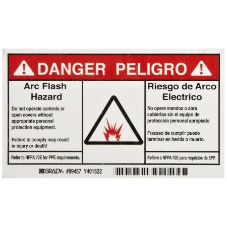 Arc Flash Warning Labels & Stickers | BRADY - BradyID.com Standard arc flash labels are available with either "Warning" or "Danger" headers. Write-on labels are also available. Arc Flash labels indicate the equipment-specific hazard information. These electrical safety labels meet all current OSHA, NFPA, NEC and NFPA70E requirements.